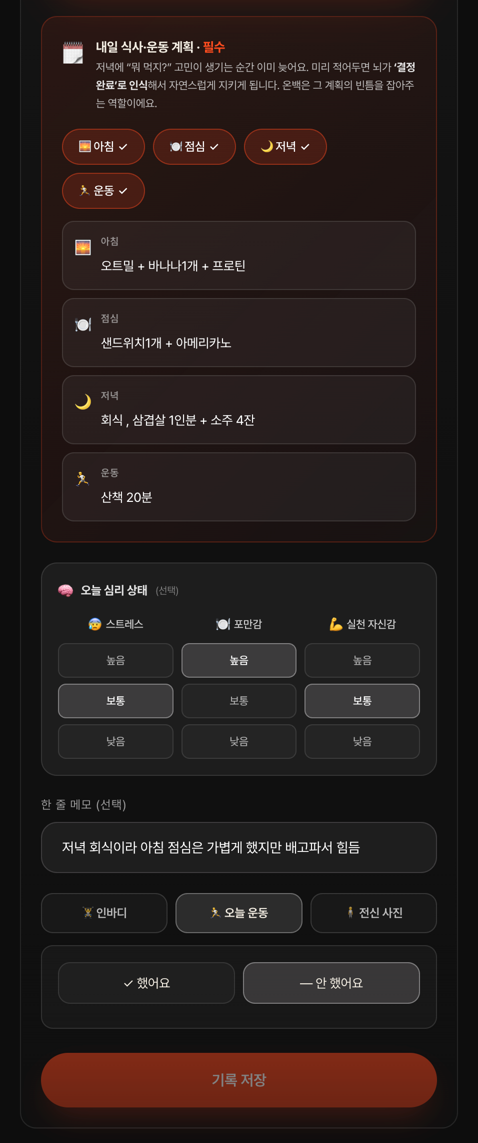- 매일 받는 '식단 피드백' + '내일의 차선책'